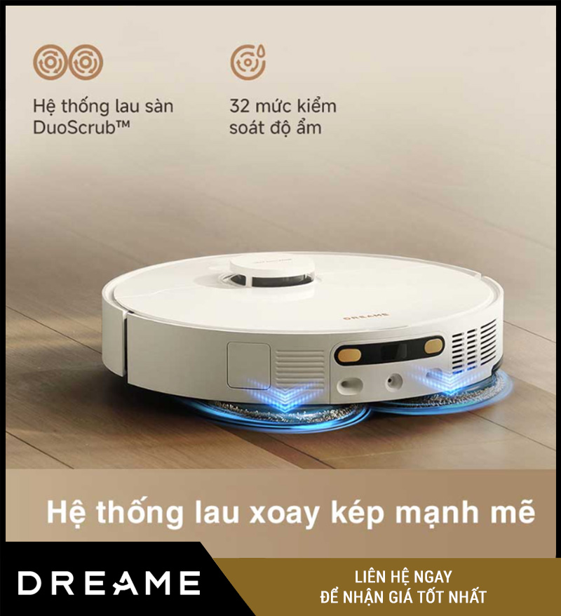 Không chỉ hút bụi, Dreame L50 Ultra CE còn có khả năng lau sàn mạnh như lau tay nhờ công nghệ DuoScrub™: sử dụng 2 đĩa lau xoay ngược chiều với tốc độ cao, tạo lực chà mạnh.