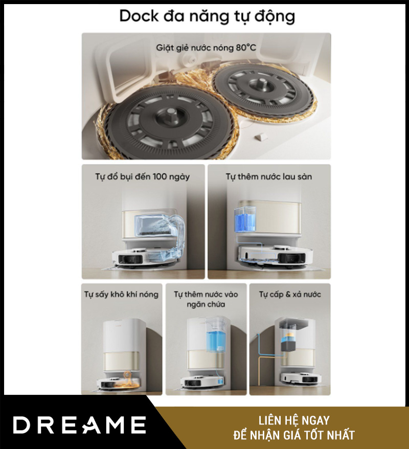 Không còn tình trạng đọng nước, tạo cặn, bám bụi dưới robot