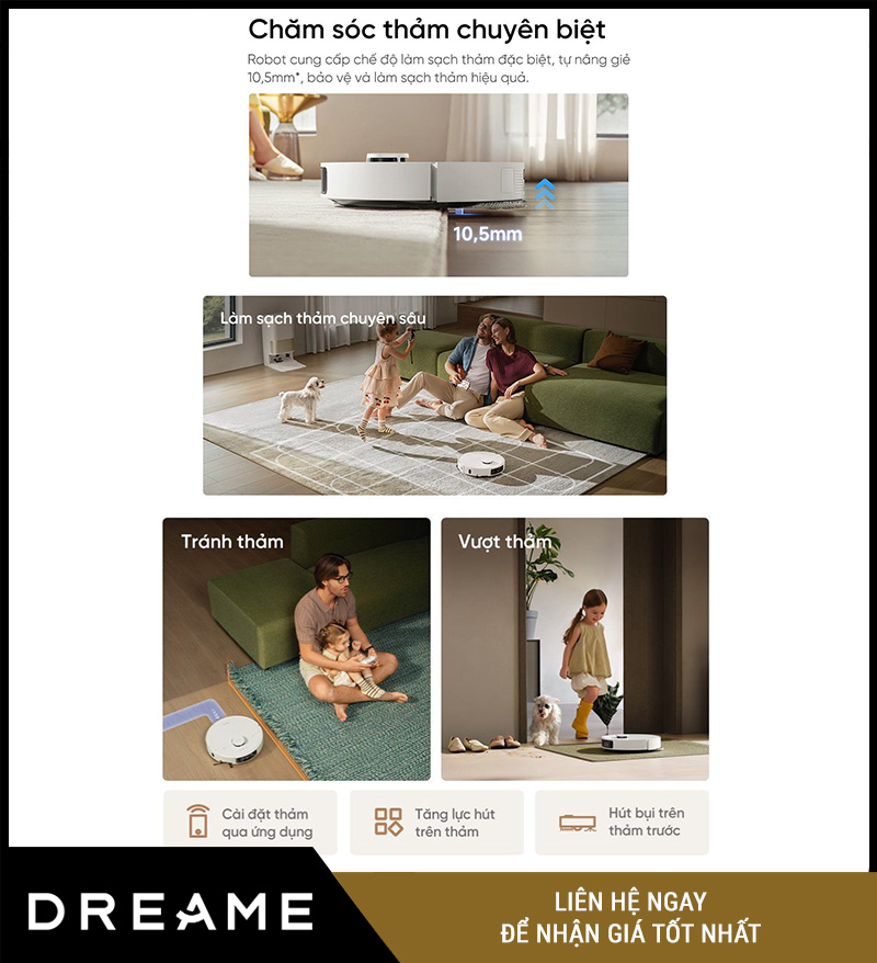 Làm sạch thảm chuyên sâu – Giẻ lau tự động nâng 10.5mm khi cần thiết