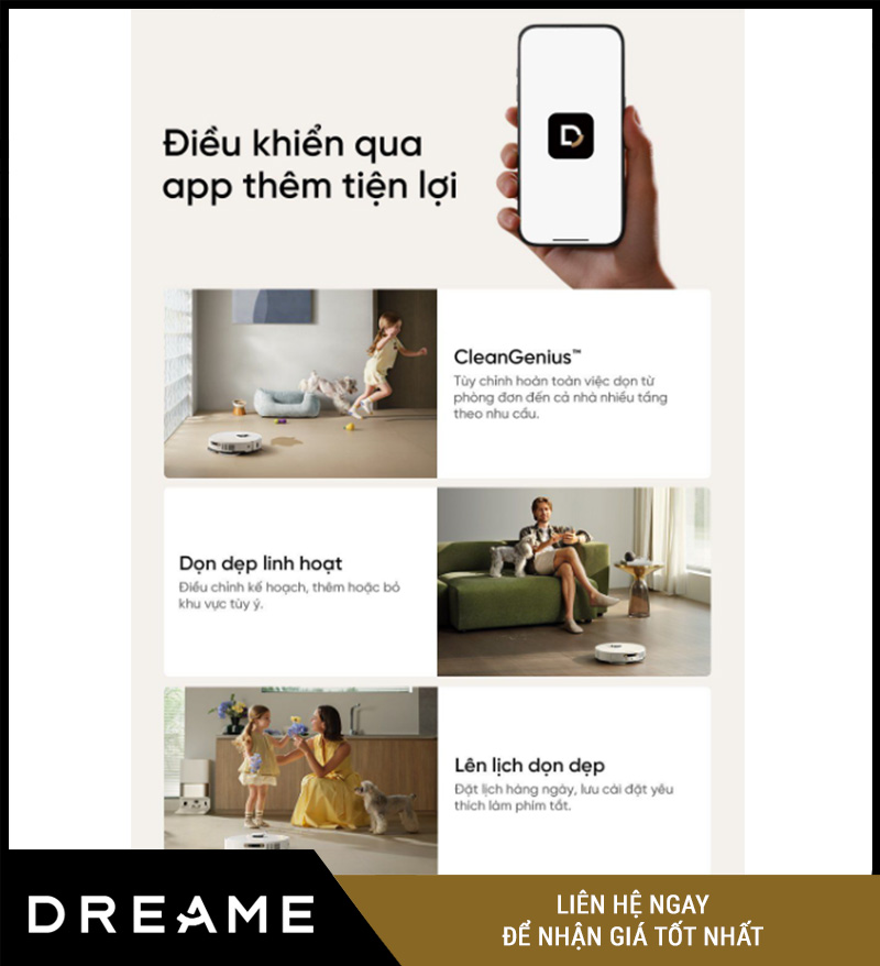 Với hệ thống điều khiển hiện đại, Dreame L50 Ultra CE trở thành một phần trong ngôi nhà thông minh hoàn chỉnh, giúp bạn quản lý từ xa mọi lúc – mọi nơi.