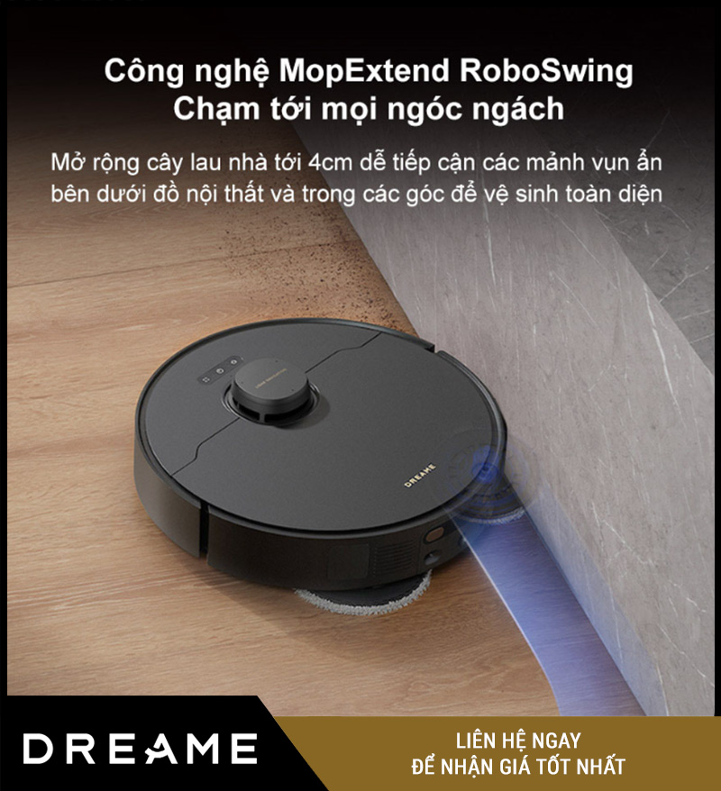 Một trong những điểm nổi bật nhất của Dreame X40 Master là khả năng lau sát mép – lau đến từng góc hẹp nhờ công nghệ MopExtend RoboSwing™.