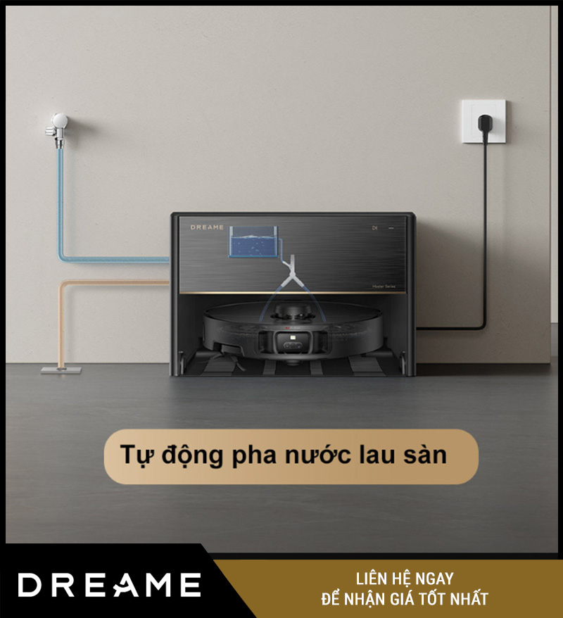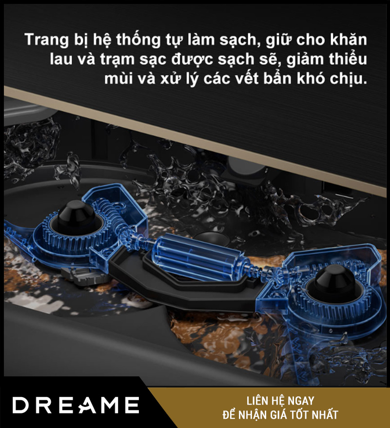 Cùng lúc, dock sẽ pha nước lau sàn theo đúng tỷ lệ (nước sạch + dung dịch tẩy rửa) đã được cài đặt, nạp lại cho robot sử dụng ở phiên làm việc tiếp theo.