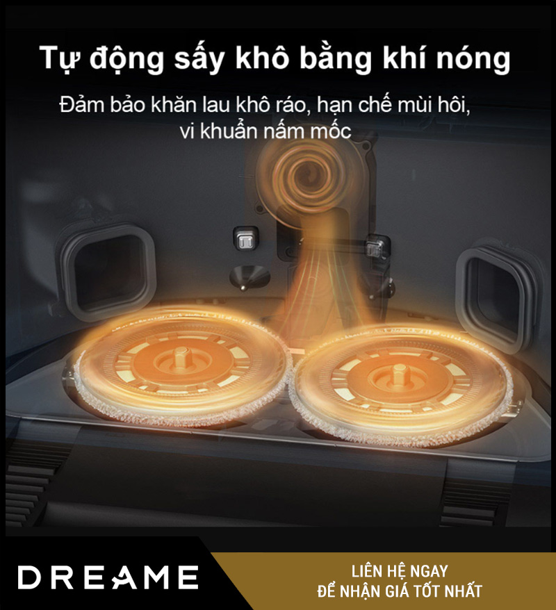 Sau khi giặt sạch, Dreame X40 Master sẽ tự động sấy giẻ bằng luồng khí nóng 45°C, giúp khăn luôn khô ráo – không mùi hôi – không lên nấm.