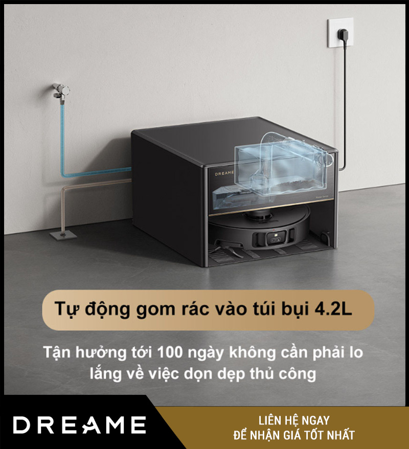 Tự hút bụi về túi rác trong trạm (đổ rác định kỳ)