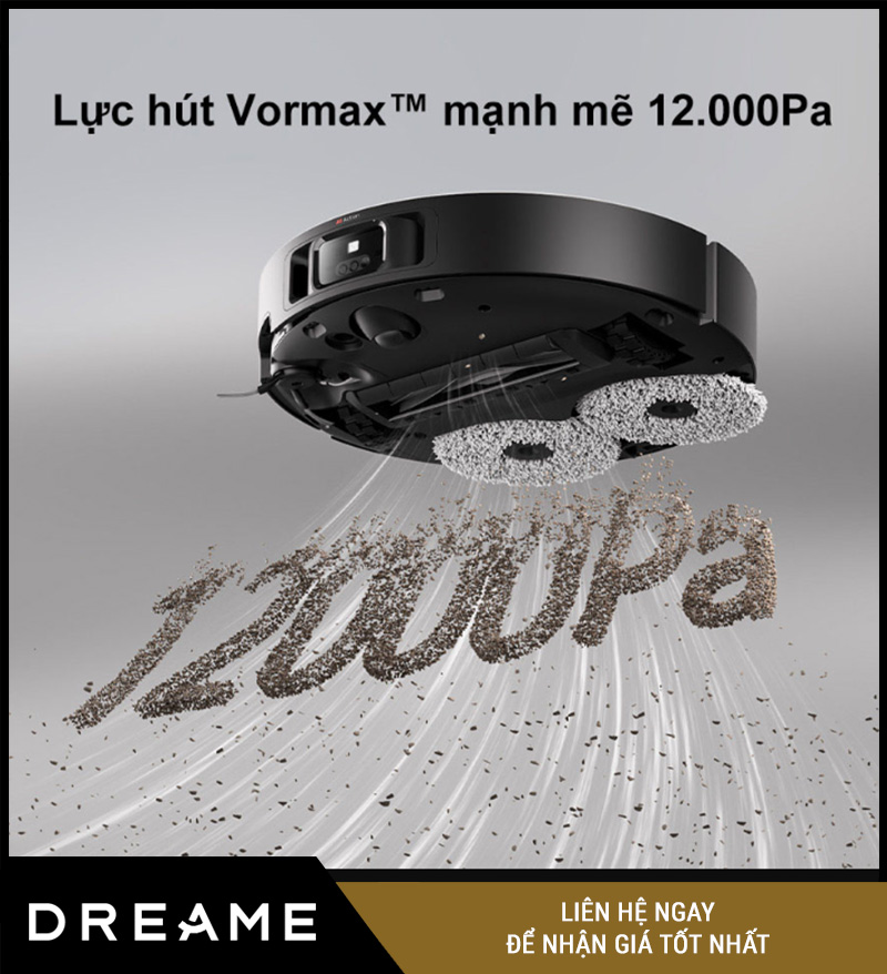 Lực hút Vormax™ mạnh mẽ lên đến 12.000Pa – Dọn sạch từ bụi mịn đến hạt lớn