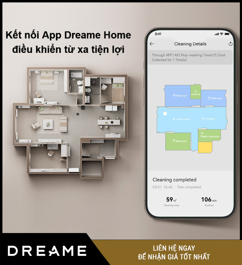 Ứng dụng Dreamehome (giao diện tiếng Việt) cho phép bạn quản lý toàn bộ hoạt động robot mọi lúc – mọi nơi: