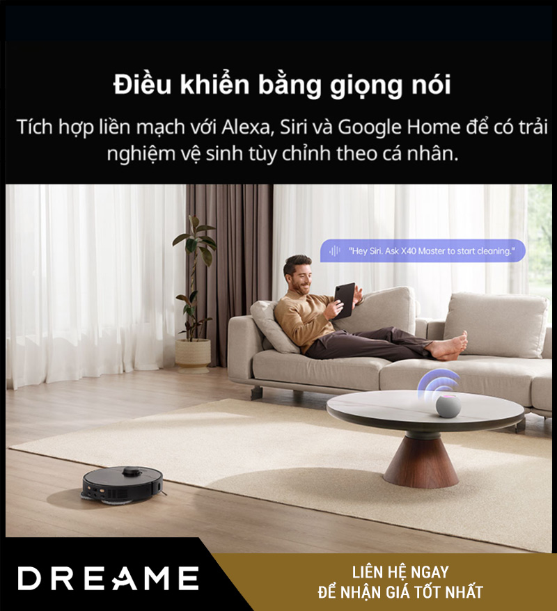 Chỉ cần nói: "Dreame, bắt đầu hút bụi phòng khách", robot sẽ tự động làm việc – đơn giản như trò chuyện.