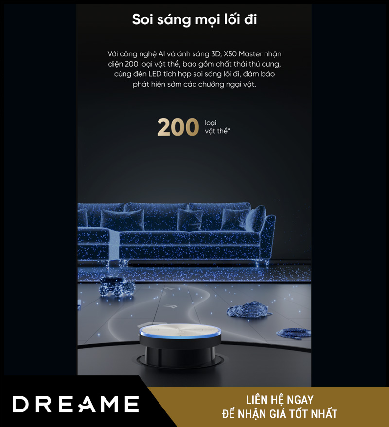 Không chỉ là một chiếc robot “chạy vòng vòng”, X50 Master được trang bị trí tuệ nhân tạo AI kết hợp cảm biến ánh sáng 3D, giúp nhận diện và tránh vật cản chính xác đến từng chi tiết nhỏ.