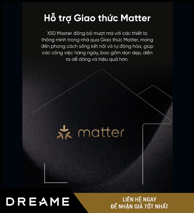 Dreame X50 Master là một trong số ít robot hút bụi hiện nay hỗ trợ giao thức Matter, tiêu chuẩn mới cho nhà thông minh toàn cầu.