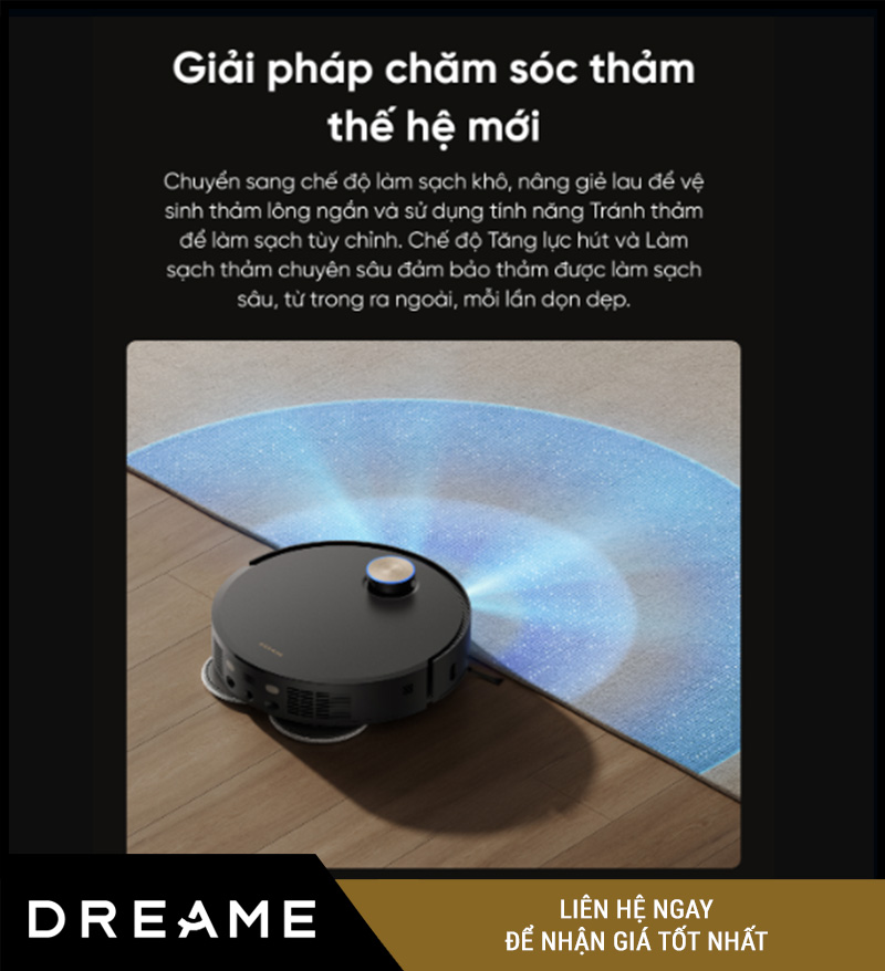 Không phải robot nào cũng “thân thiện với thảm”. Dreame X50 Master tích hợp chế độ làm sạch thảm chuyên sâu, đặc biệt hiệu quả với thảm lông ngắn – thảm trang trí cao cấp – thảm trải phòng ngủ.