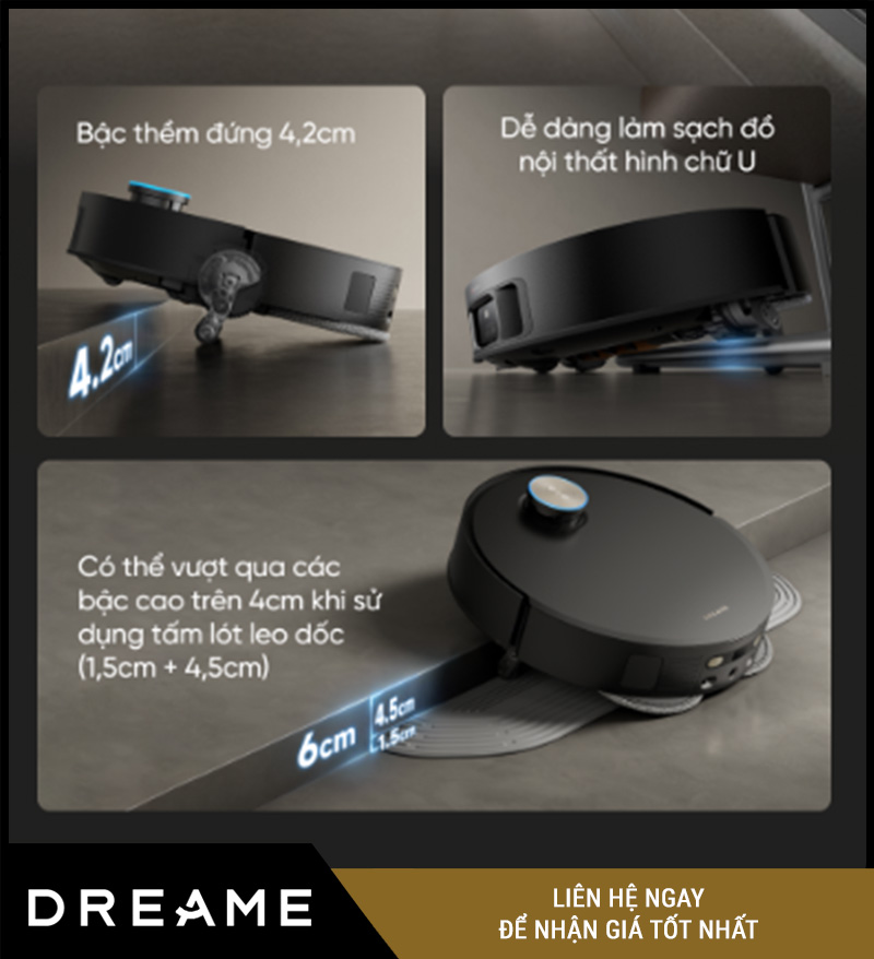 Nhờ khả năng vượt địa hình xuất sắc, Dreame X50 Master phù hợp cả căn hộ nhỏ lẫn biệt thự nhiều tầng, giữ hiệu suất làm sạch liền mạch, không gián đoạn.