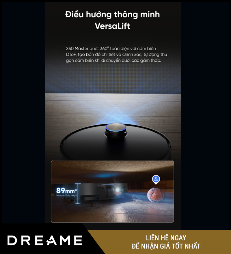 Không chỉ mạnh mẽ trong di chuyển, Dreame X50 Master còn gây ấn tượng bởi khả năng điều hướng thông minh với hệ thống VersaLift™, cho phép robot: