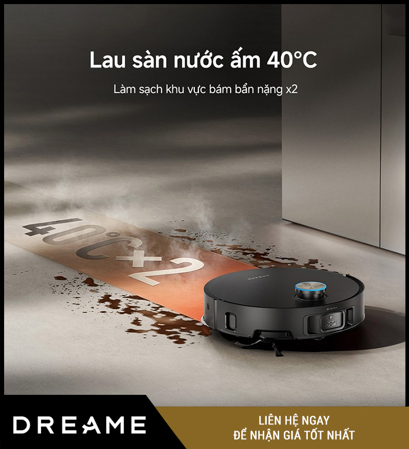 X50 Pro Ultra dùng lau nước ấm 40°C (warm water mopping) — điểm khác biệt lớn so với nhiều robot lau bằng nước thường. Nước ấm giúp hòa tan dầu mỡ và làm mềm vết khô (đồ ăn rơi, vệt bếp), nên lau “đã” hơn ở khu bếp + bàn ăn.