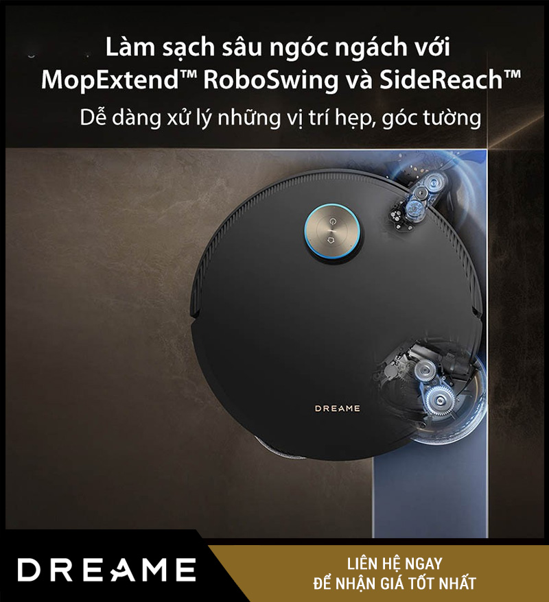 Ví dụ: Khu chân tủ bếp và cạnh tường hay bám bụi + vệt bếp → MopExtend + SideReach giúp robot xử lý sát hơn, bạn đỡ phải lau lại bằng khăn.