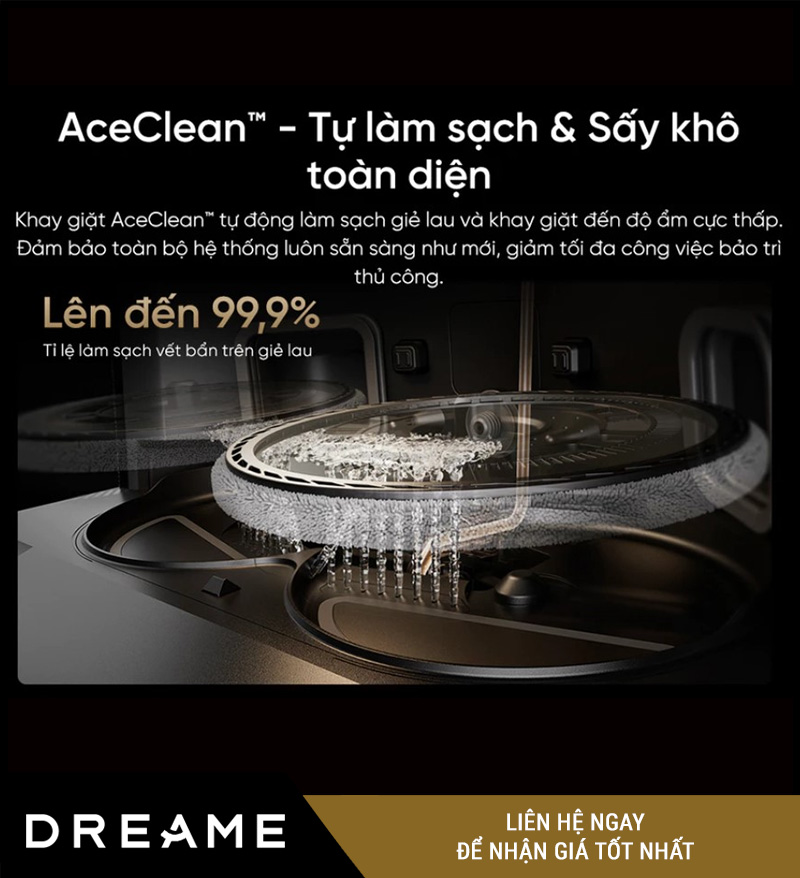 AceClean™ DryBoard tập trung vào vệ sinh chính dock – cụ thể là khu vực giặt giẻ/khay giặt, nơi thường bám cặn bẩn, tóc, bùn đất và là nguồn gây mùi nếu không làm sạch định kỳ.
