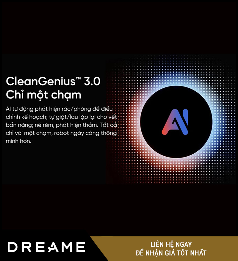 CleanGenius™ 3.0 giúp robot tự tối ưu theo mức bẩn từng khu vực (ít phải chỉnh thủ công).