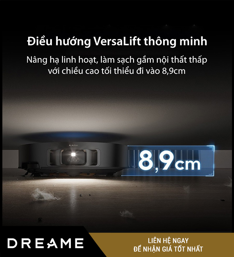 Ví dụ: Nhà có gầm sofa thấp và nhiều chân bàn: VersaLift giúp robot đi vào/đi ra mượt hơn, giảm tình trạng kẹt hoặc va cụm lidar.