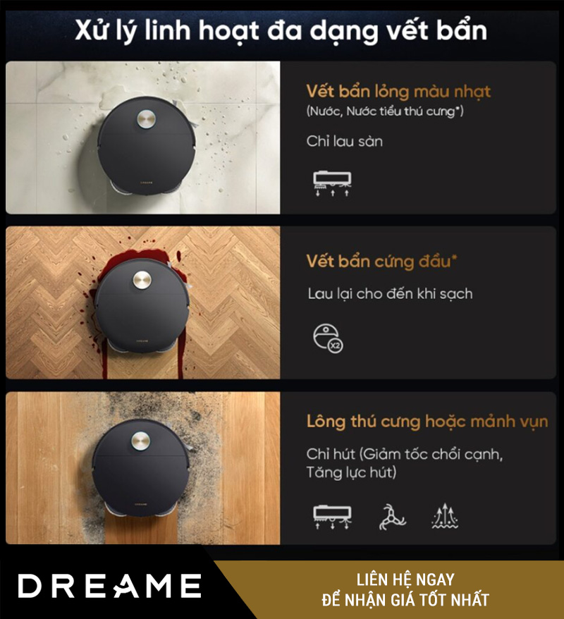 Bên cạnh đó, robot còn áp dụng chiến lược làm sạch tối ưu, tự động xác định khu vực cần ưu tiên, phân chia lộ trình hợp lý và điều chỉnh chế độ vệ sinh theo từng bề mặt sàn.