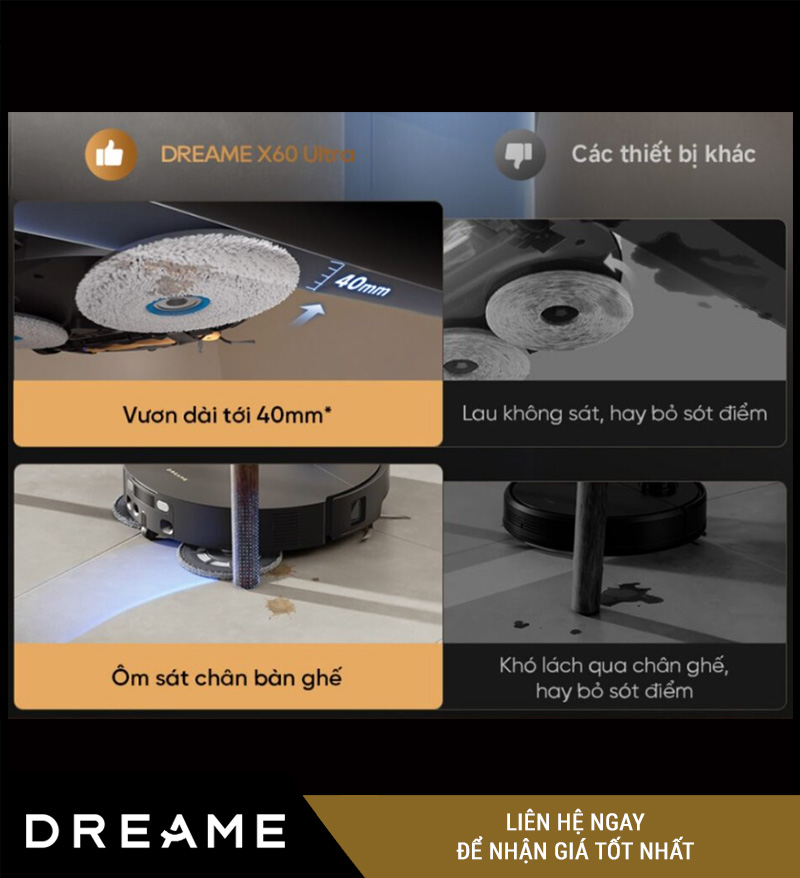 …giúp Dreame X60 Ultra nâng trải nghiệm lau sàn lên một cấp độ mới, gần hơn với khả năng làm sạch thủ công nhưng vẫn hoàn toàn tự động.