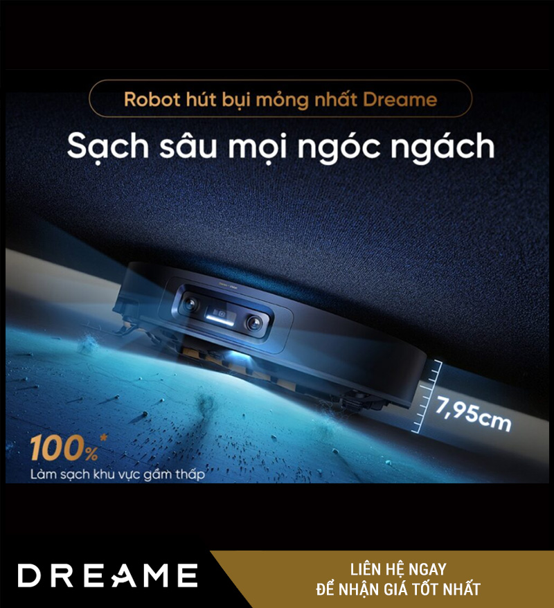 Một trong những điểm nổi bật đầu tiên của Dreame X60 Ultra – Bản Quốc Tế chính là thiết kế thân máy siêu mỏng chỉ 7.95cm. Nhờ đó, robot có thể dễ dàng len lỏi vào những khu vực thấp như gầm giường, gầm sofa, tủ kệ và các khoảng hẹp mà nhiều dòng robot thông thường khó tiếp cận.