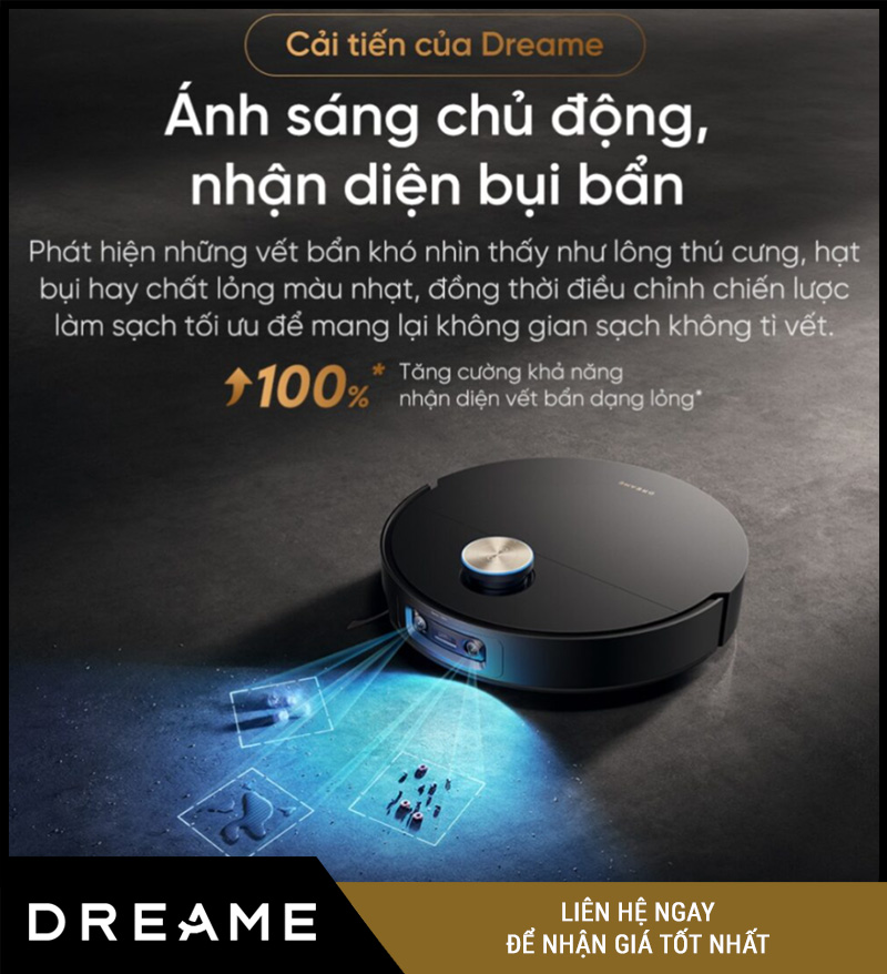 Không gian thiếu sáng như gầm giường, góc tủ hay hành lang hẹp thường là nơi robot thông thường dễ hoạt động kém hiệu quả. Với đèn LED hỗ trợ, Dreame X60 Ultra có thể tăng khả năng nhận diện môi trường, từ đó duy trì hiệu suất làm sạch ổn định ngay cả ở điều kiện ánh sáng yếu.